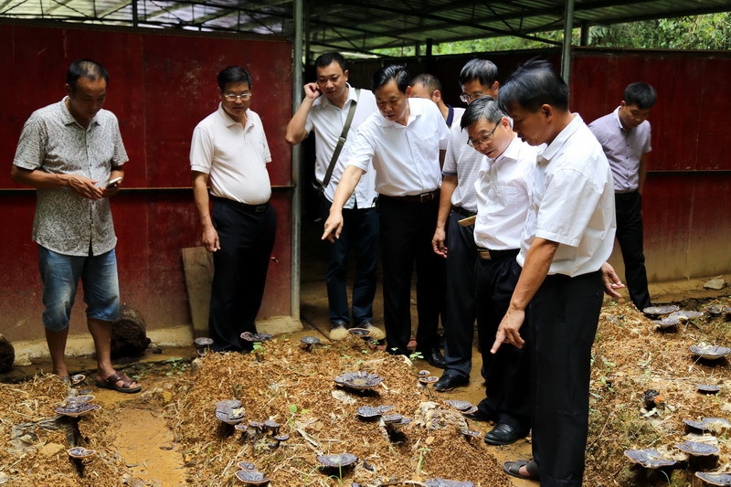 黄少雄同志对古那村灵芝种植基地进行实地考察,听取驻村第一书记左良的工作汇报,了解扶贫工作中遇到的困难和问题,对下一步工作提出可行性建议。
